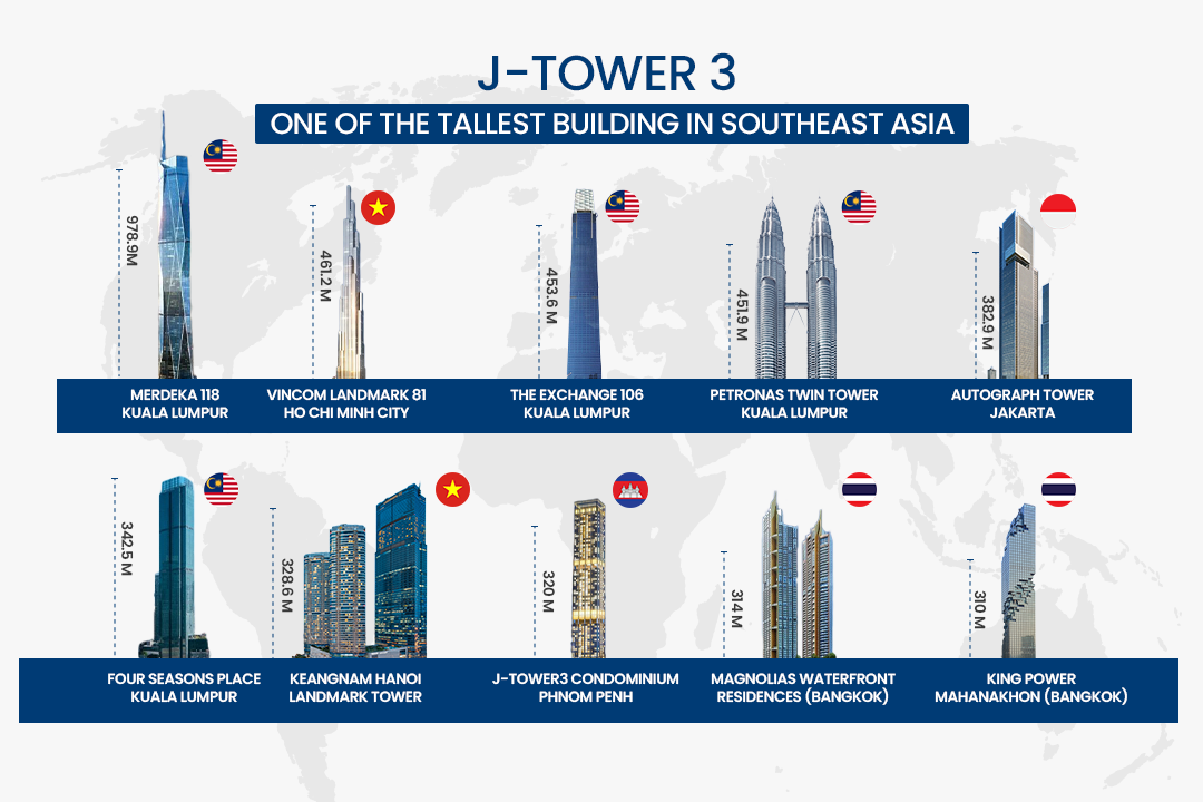 We aim to shape Phnom Penh’s urban identity through sustainable architecture, refined design, and trustworthy investment value. J Tower 3 embodies this vision: an architectural statement that stands tall among the Top 10 highest residential buildings in Southeast Asia, designed for those who expect excellence in every aspect.